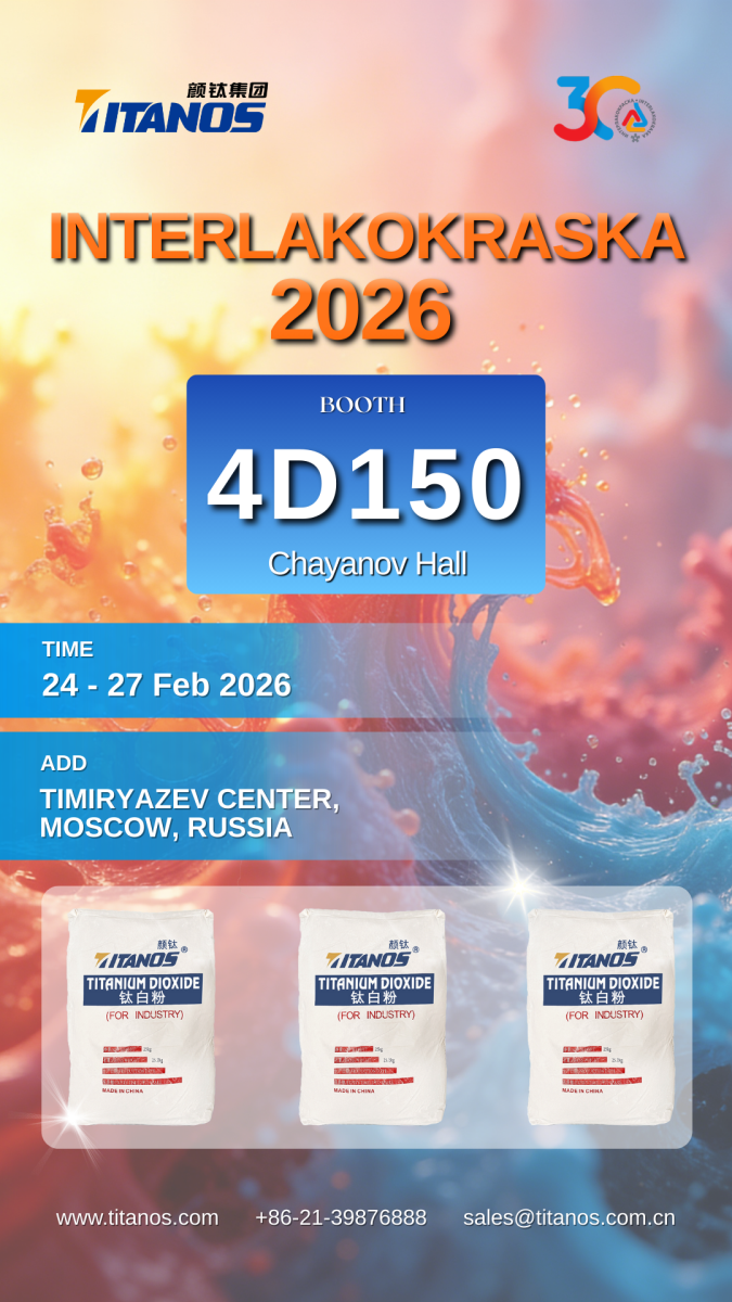 Titanos cordially invites you to visit us at INTERLAKOKRASKA 2026 in Moscow, Russia. Join us at Booth 4D150 from 24–27 February 2026 to explore partnership opportunities and discover how our titanium dioxide solutions can enhance your production efficiency and drive your market growth.